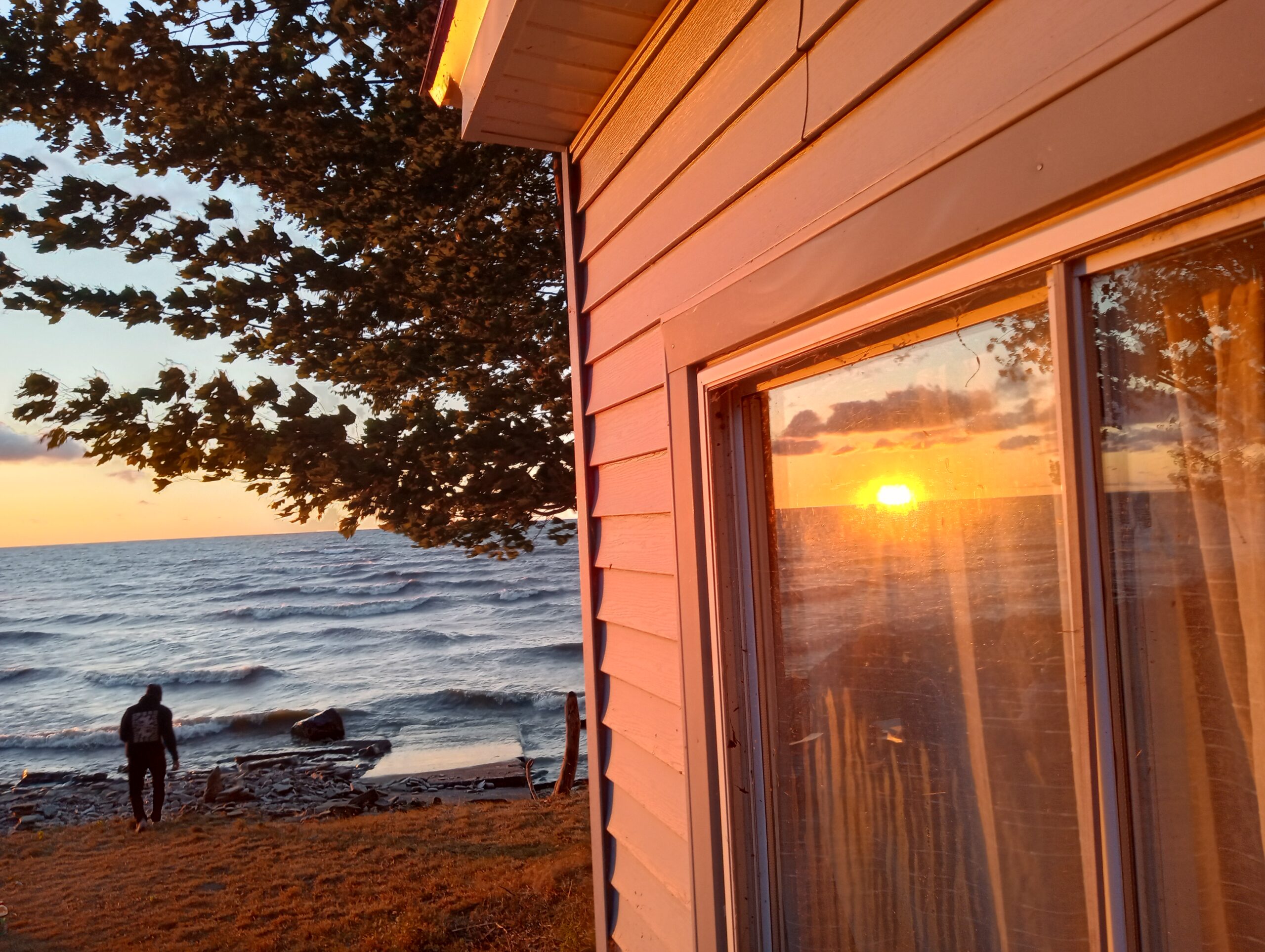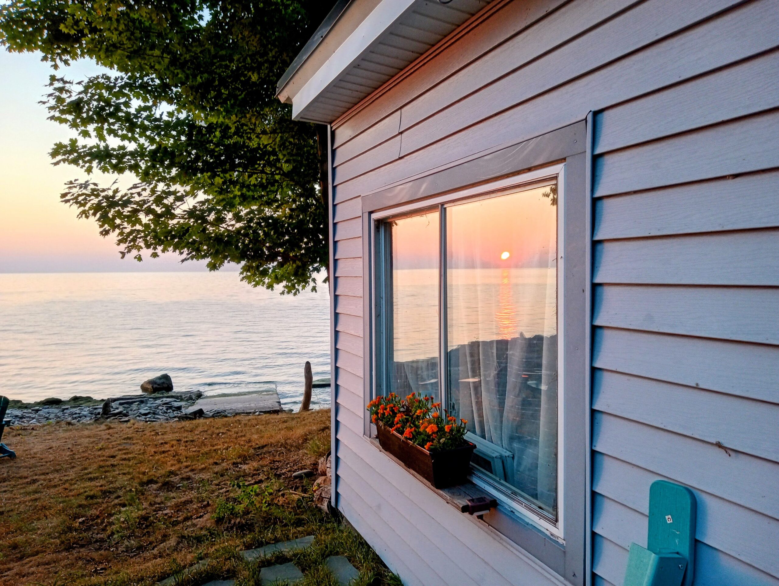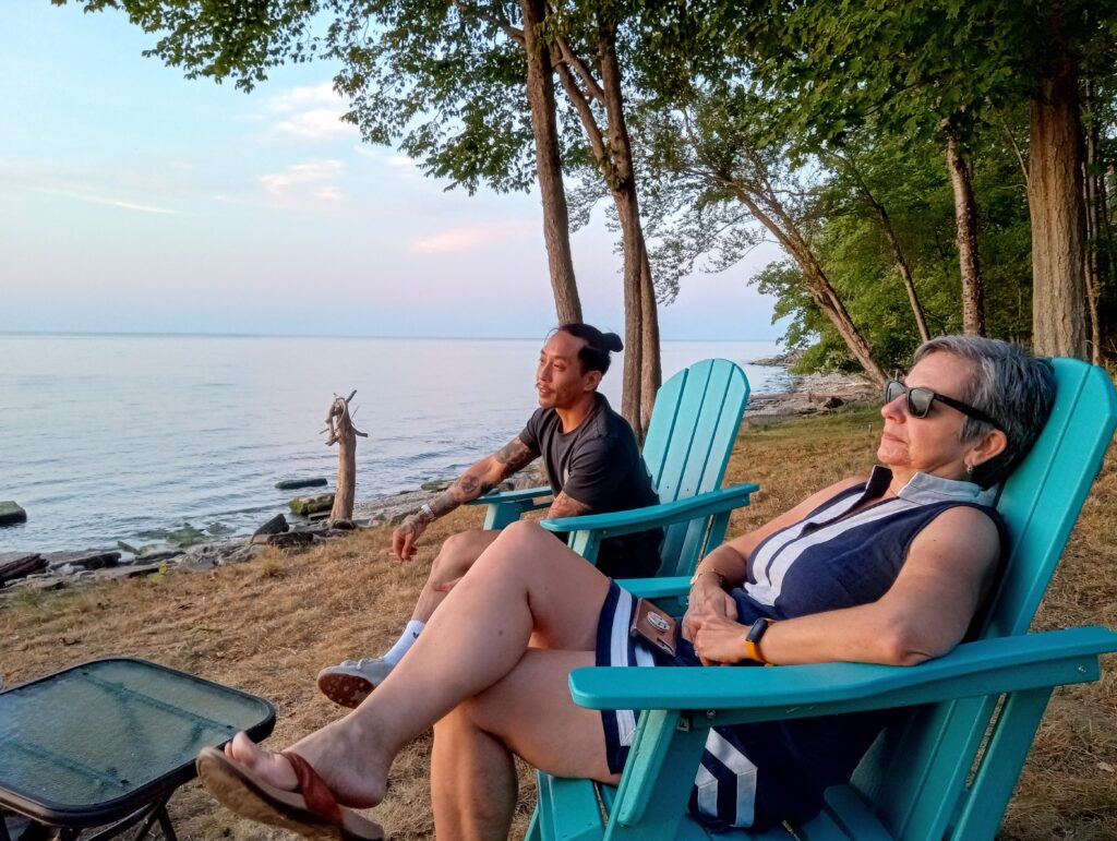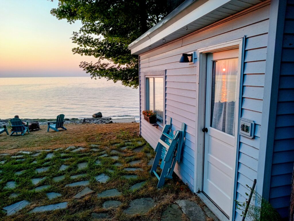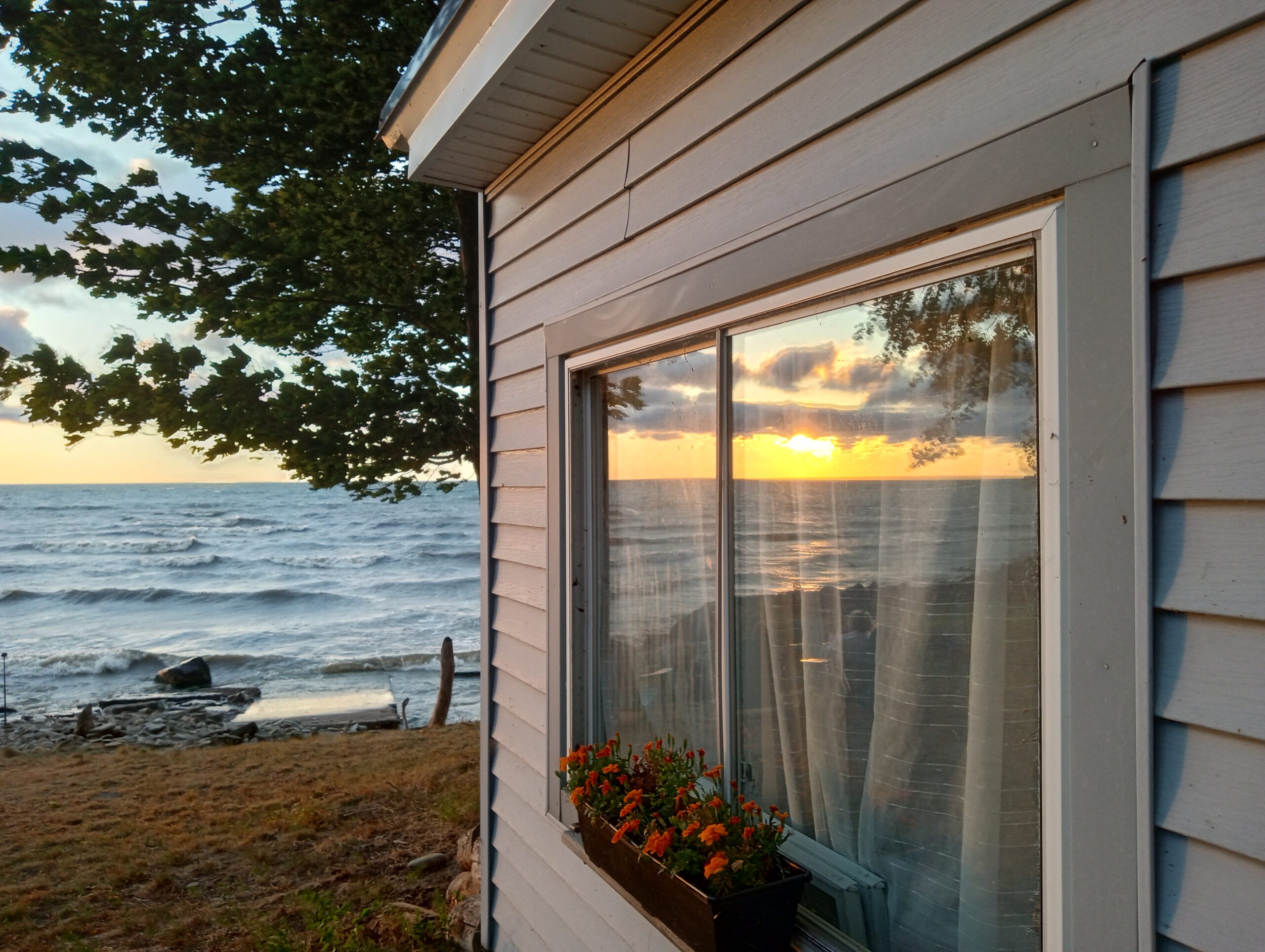 Here’s the sunset page in the photo album from Maggie’s Scriba party, Aug. 15-17, 2025. The lake was calm and quiet all day Friday and Saturday, but Sunday it was not, but blustery and turbulent instead. Sunday’s sun broke through in the nick of time to treat us to another blush of sunset, reminiscent of legendairy Hawaiian Moon ice cream from Stone’s! (See people & party pictures here.)